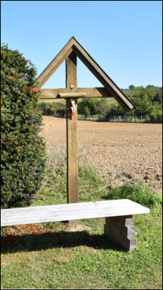 In einer kleinen, gepflegten Anlage steht dieses Holzkreuz am Verbindungsweg von Ronthal nach Hohenwarth. Das Kreuz markierte
